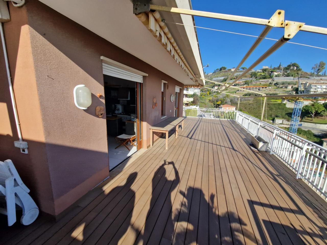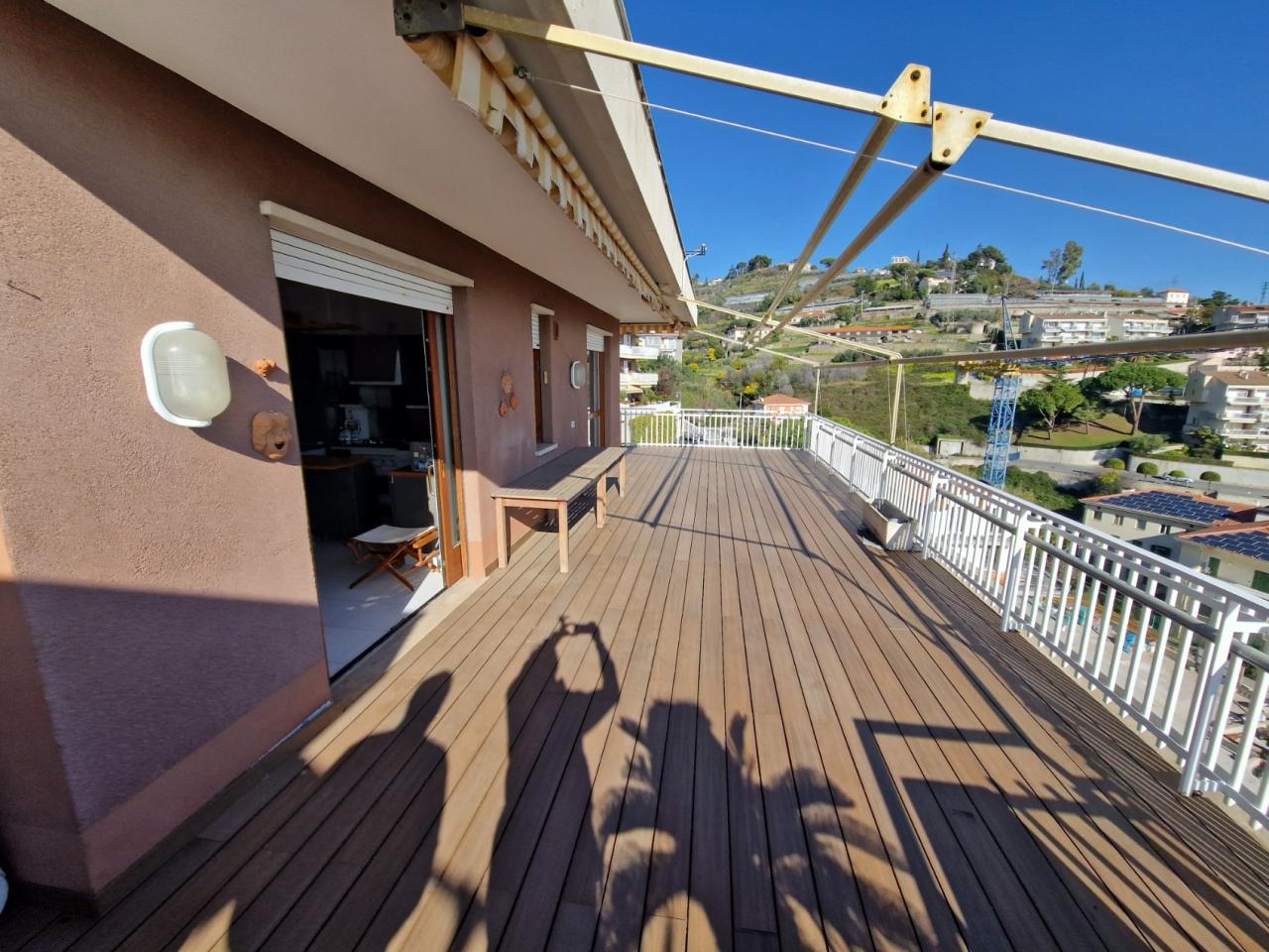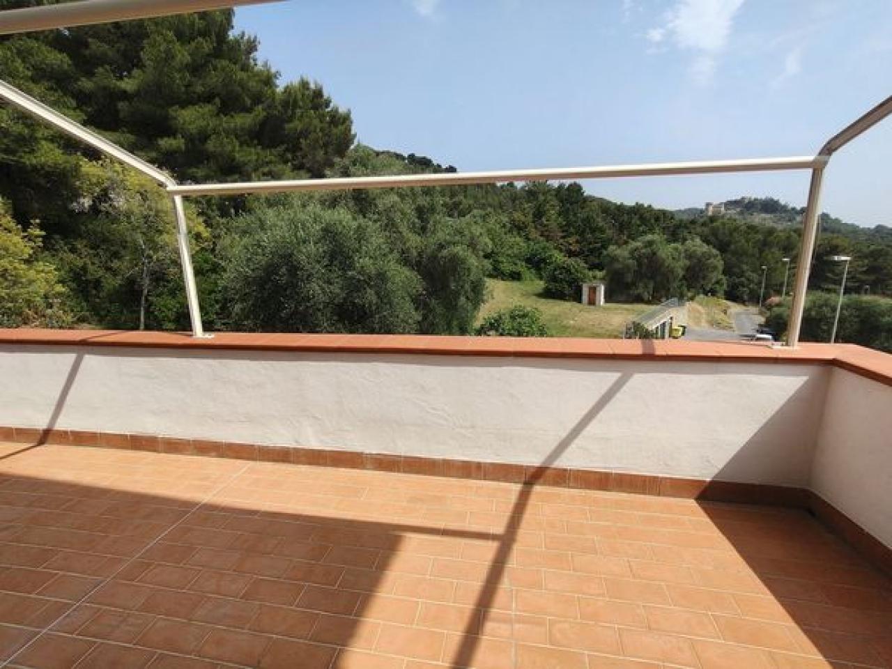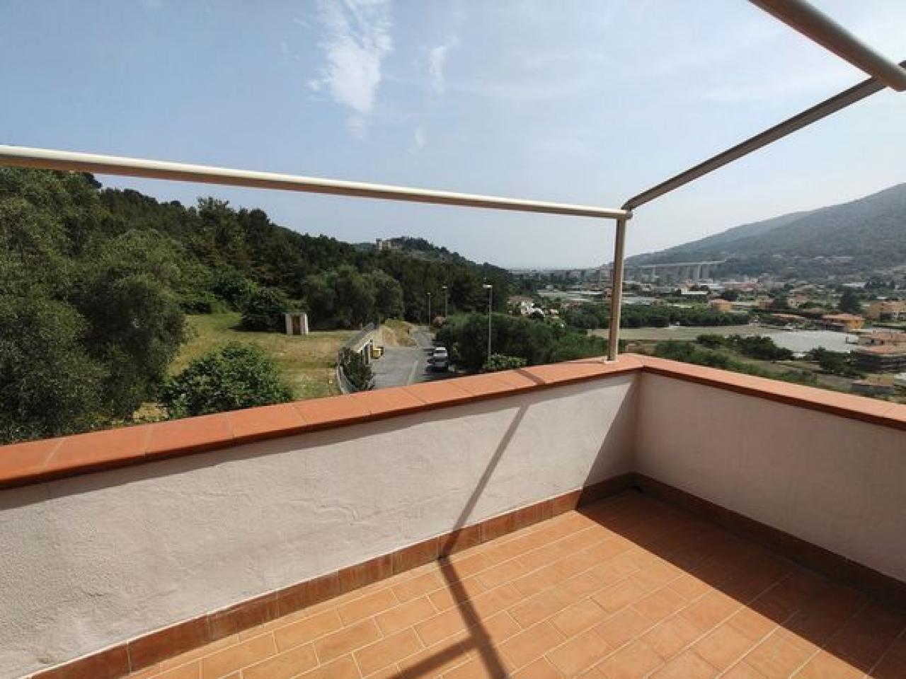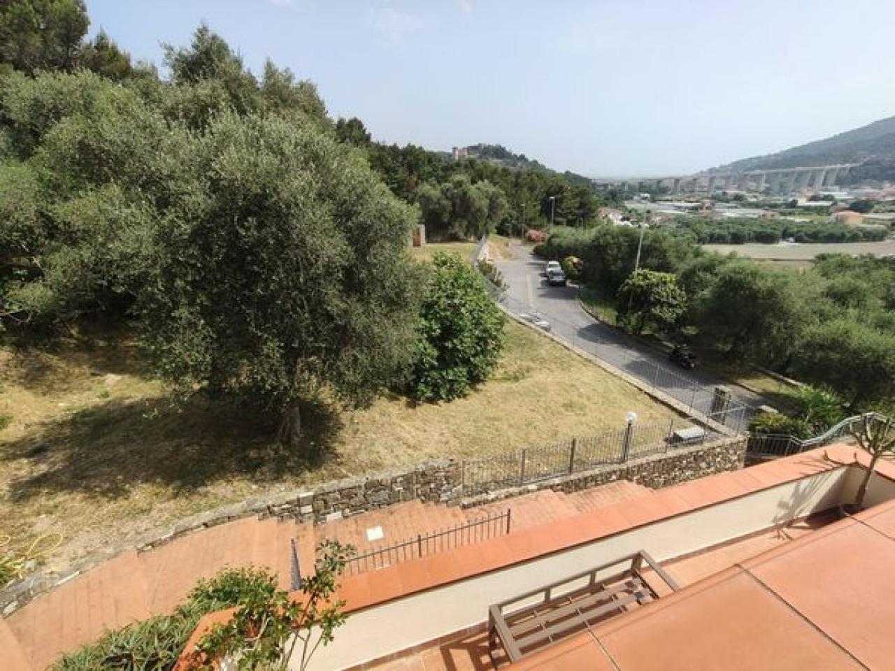 Trust RE Group propone in vendita ad Andora appartamento in piccolo condominio con ampie zone verdi condominiali ed un'area parcheggio per gli ospiti ed amici. L'immobile ha l'accesso diretto dal grande terrazzo che, oltre a girare intorno, ha vista aperta sulla vallata e scorcio di vista mare. Disposto su due livelli, entrambi con un bagno finestrato, così suddivisi: al piano del terrazzo si trova la zona giorno, mentre al piano superiore troviamo la camera da letto matrimoniale, la cameretta ed il bagno padronale finestrato. Completa la proprietà un garage ed il posto auto esterno. Il riscaldamento è autonomo a mezzo bombolone GPL e pompe di calore. Le spese condominiali sono molto contenute tenendo conto anche della manutenzioni dei giardini condominiali.