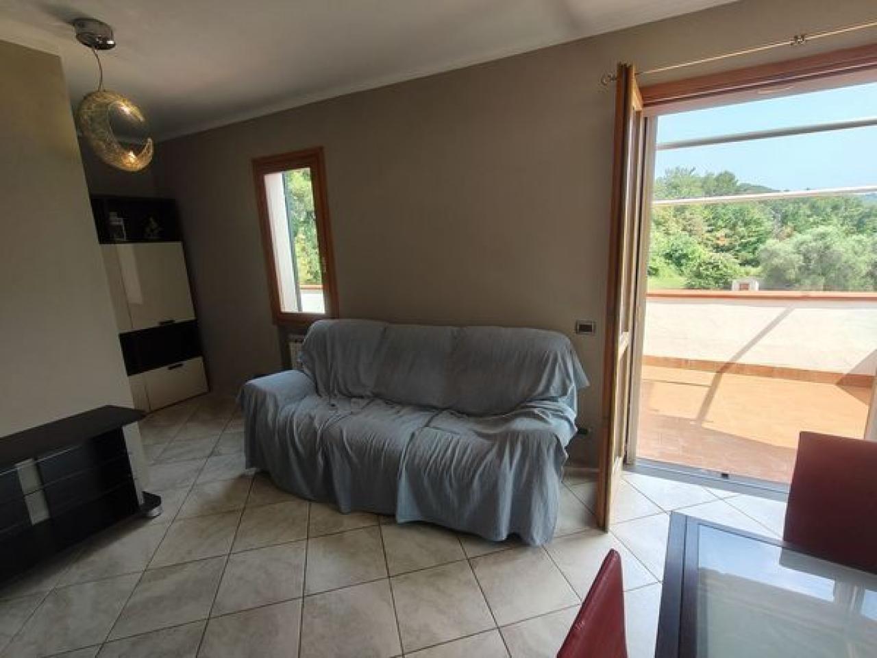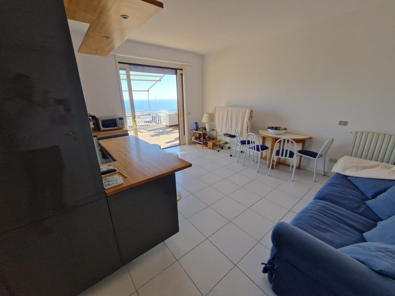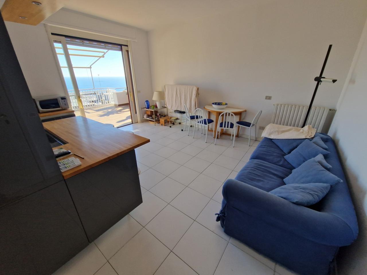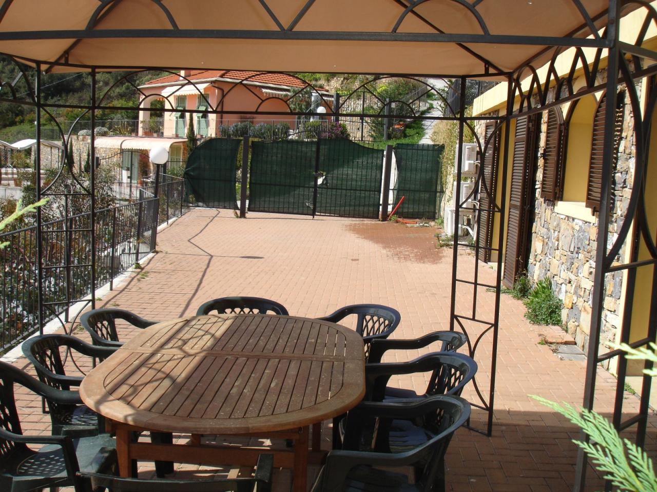 Trust RE Group propone in vendita ad Andora appartamento in piccolo condominio con ampie zone verdi condominiali ed un'area parcheggio per gli ospiti ed amici. L'immobile ha l'accesso diretto dal grande terrazzo che, oltre a girare intorno, ha vista aperta sulla vallata e scorcio di vista mare. Disposto su due livelli, entrambi con un bagno finestrato, così suddivisi: al piano del terrazzo si trova la zona giorno, mentre al piano superiore troviamo la camera da letto matrimoniale, la cameretta ed il bagno padronale finestrato. Completa la proprietà un garage ed il posto auto esterno. Il riscaldamento è autonomo a mezzo bombolone GPL e pompe di calore. Le spese condominiali sono molto contenute tenendo conto anche della manutenzioni dei giardini condominiali.