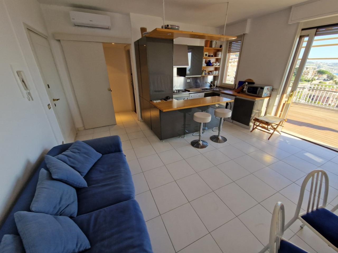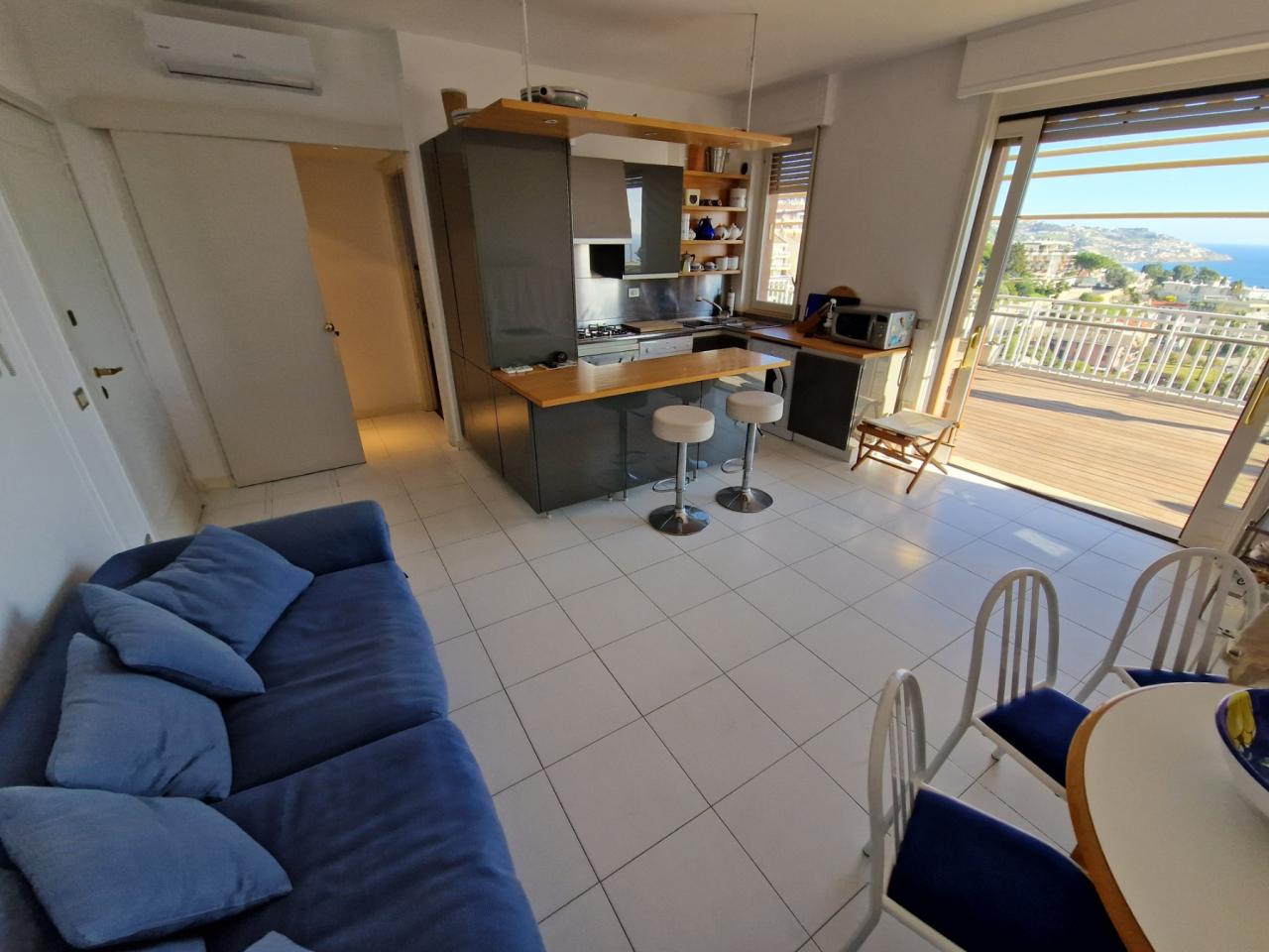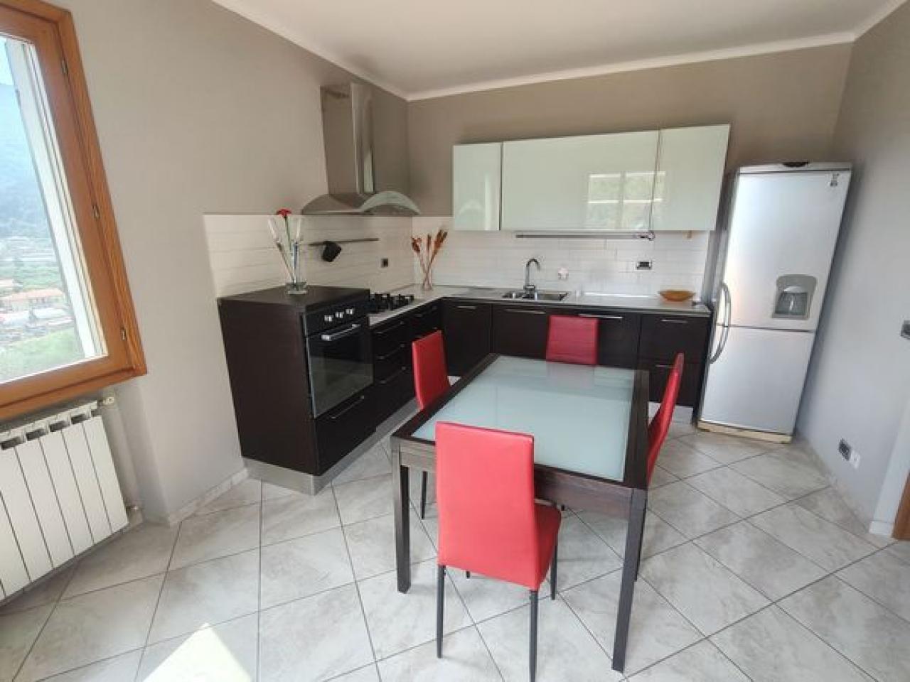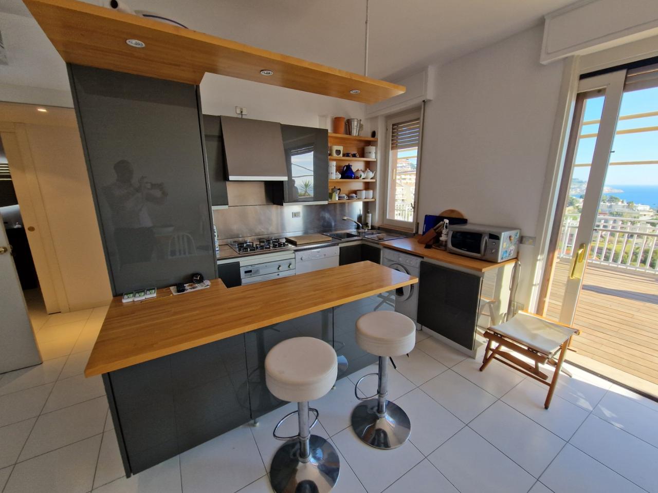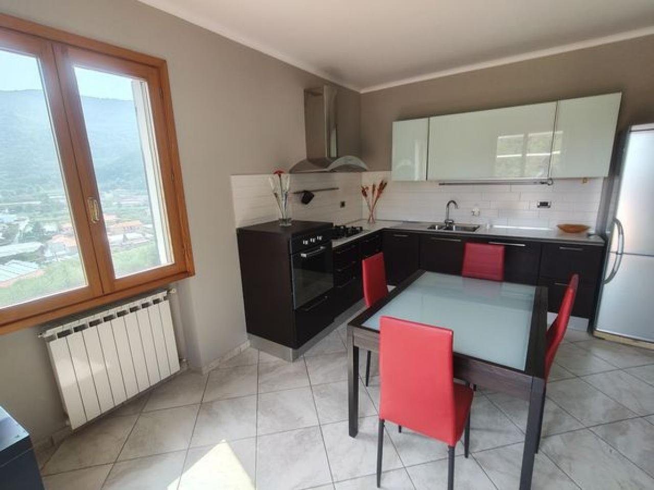Trust RE Group propone in vendita ad Andora appartamento in piccolo condominio con ampie zone verdi condominiali ed un'area parcheggio per gli ospiti ed amici. L'immobile ha l'accesso diretto dal grande terrazzo che, oltre a girare intorno, ha vista aperta sulla vallata e scorcio di vista mare. Disposto su due livelli, entrambi con un bagno finestrato, così suddivisi: al piano del terrazzo si trova la zona giorno, mentre al piano superiore troviamo la camera da letto matrimoniale, la cameretta ed il bagno padronale finestrato. Completa la proprietà un garage ed il posto auto esterno. Il riscaldamento è autonomo a mezzo bombolone GPL e pompe di calore. Le spese condominiali sono molto contenute tenendo conto anche della manutenzioni dei giardini condominiali.
