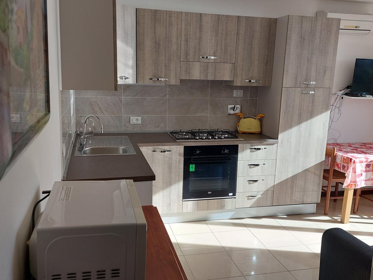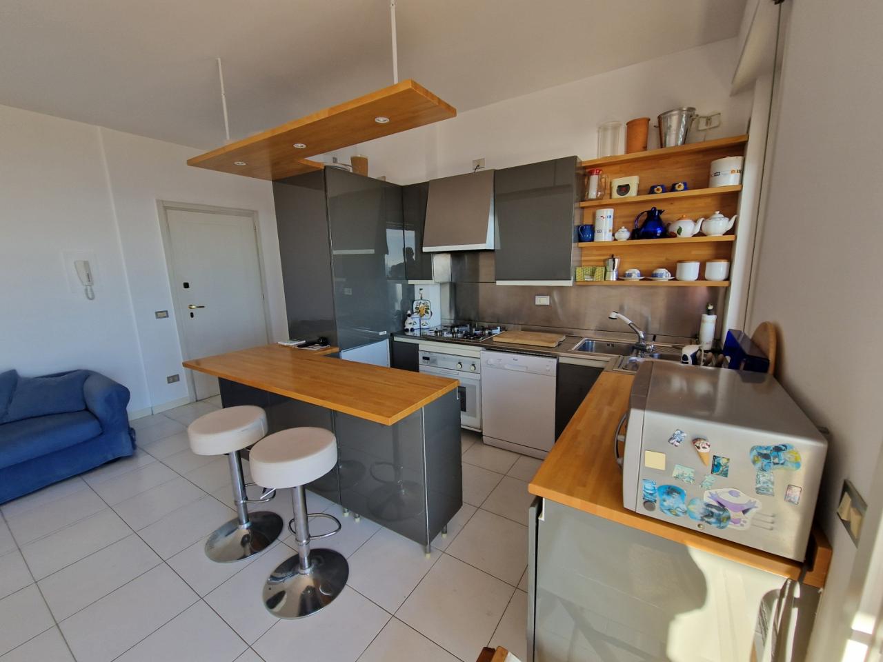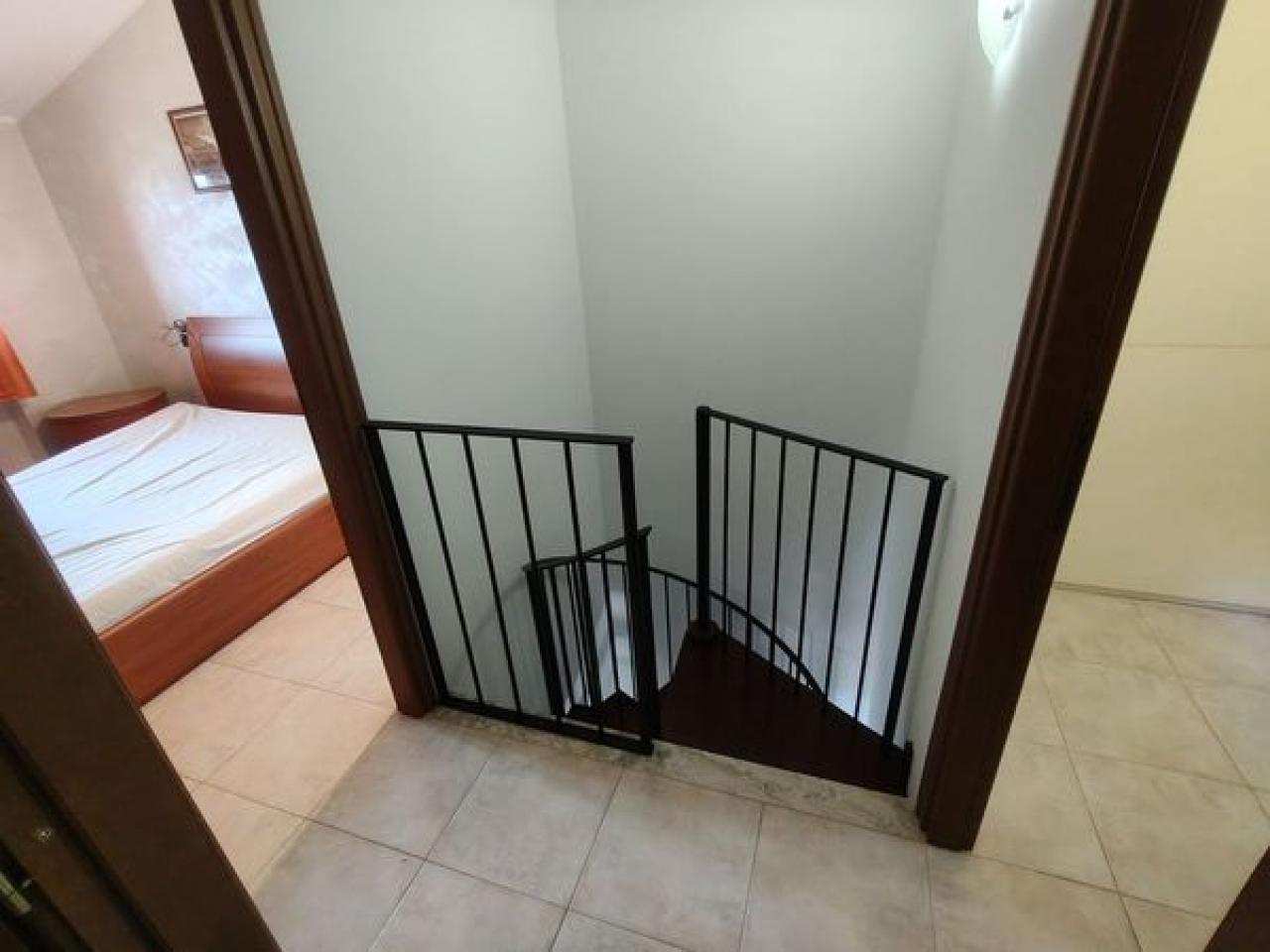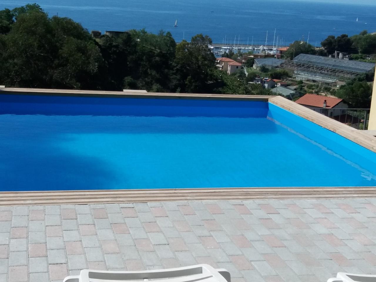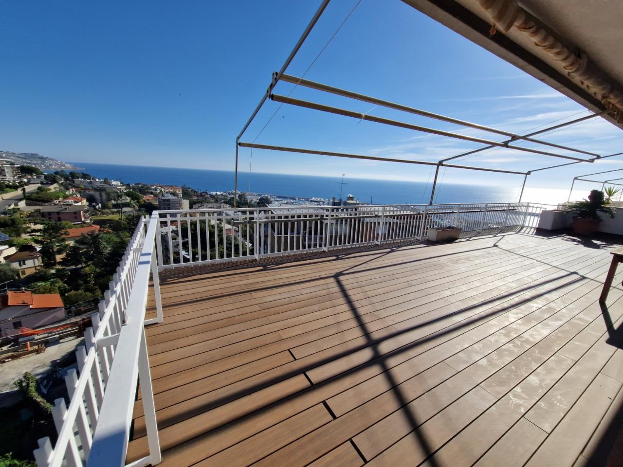 Trust RE Group propone in vendita ad Andora appartamento in piccolo condominio con ampie zone verdi condominiali ed un'area parcheggio per gli ospiti ed amici. L'immobile ha l'accesso diretto dal grande terrazzo che, oltre a girare intorno, ha vista aperta sulla vallata e scorcio di vista mare. Disposto su due livelli, entrambi con un bagno finestrato, così suddivisi: al piano del terrazzo si trova la zona giorno, mentre al piano superiore troviamo la camera da letto matrimoniale, la cameretta ed il bagno padronale finestrato. Completa la proprietà un garage ed il posto auto esterno. Il riscaldamento è autonomo a mezzo bombolone GPL e pompe di calore. Le spese condominiali sono molto contenute tenendo conto anche della manutenzioni dei giardini condominiali.